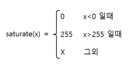 실제로 영상 밝기 조절을 구현할 때에는 포화연산을 고려해야 한다