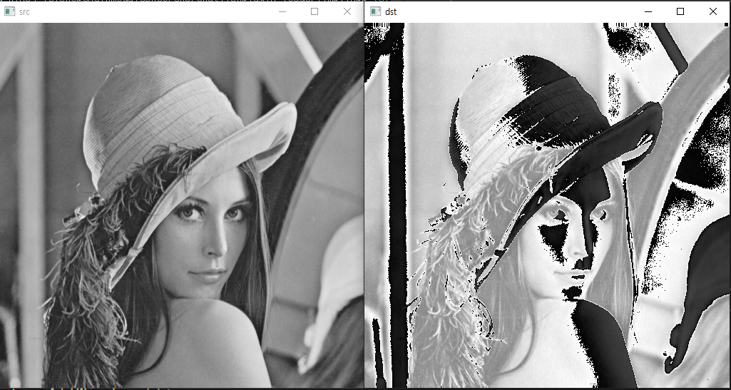 //프로그램 실행 시 dst 창에 레나 영상이 정상적으로 표시되도록 강제로 on_brightness() 함수를 호출